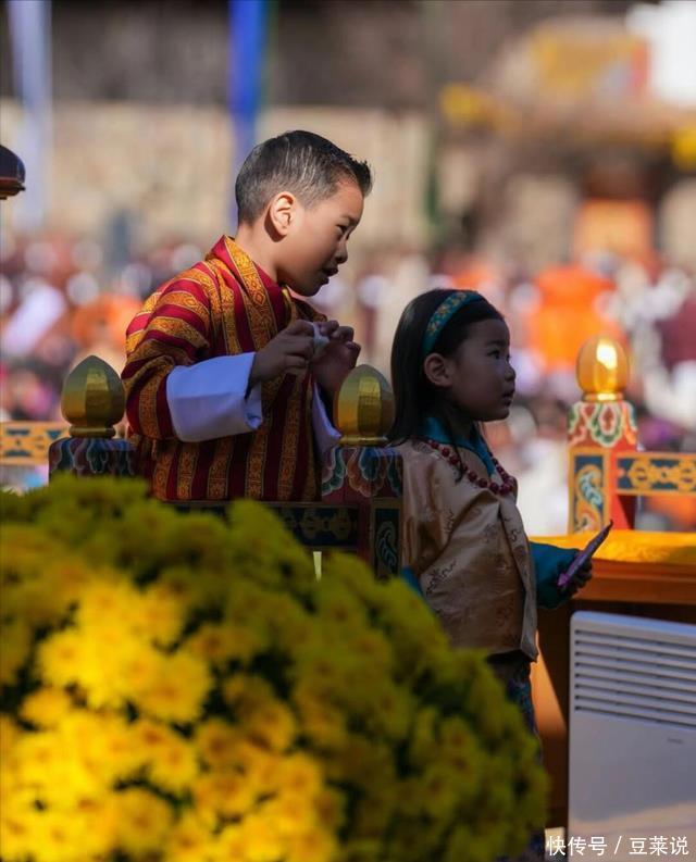 不丹一年一度的国庆节,险些成了王室“颜值盛宴”的现场直播!国王吉格梅和王后佩玛带着三个孩子皆皆亮相,连王后的父母也一同出席。 蓝天白云下,一家子穿戴颜色璀璨的传统衣饰,笑貌灿烂,风物好不吵杂喜庆!