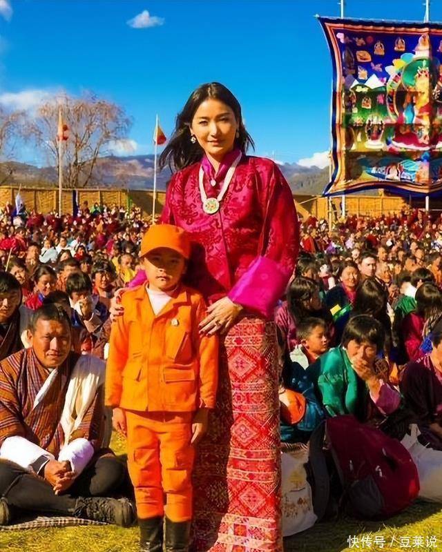 不丹一年一度的国庆节,险些成了王室“颜值盛宴”的现场直播!国王吉格梅和王后佩玛带着三个孩子皆皆亮相,连王后的父母也一同出席。 蓝天白云下,一家子穿戴颜色璀璨的传统衣饰,笑貌灿烂,风物好不吵杂喜庆! 要说最吸睛的,还得是佩玛王后。讲真, 35岁的她,险些便是不丹民族衣饰“行走的种草机” !此次她身着一袭亮眼的 玫红色传统长袍“基拉” ,长发如瀑般披在肩头,在一处浓妆艳抹的门廊下微微侧首, 嘴角噙着