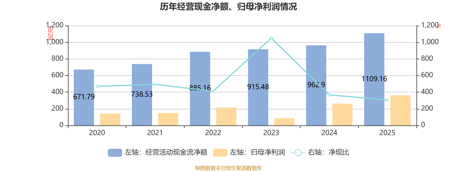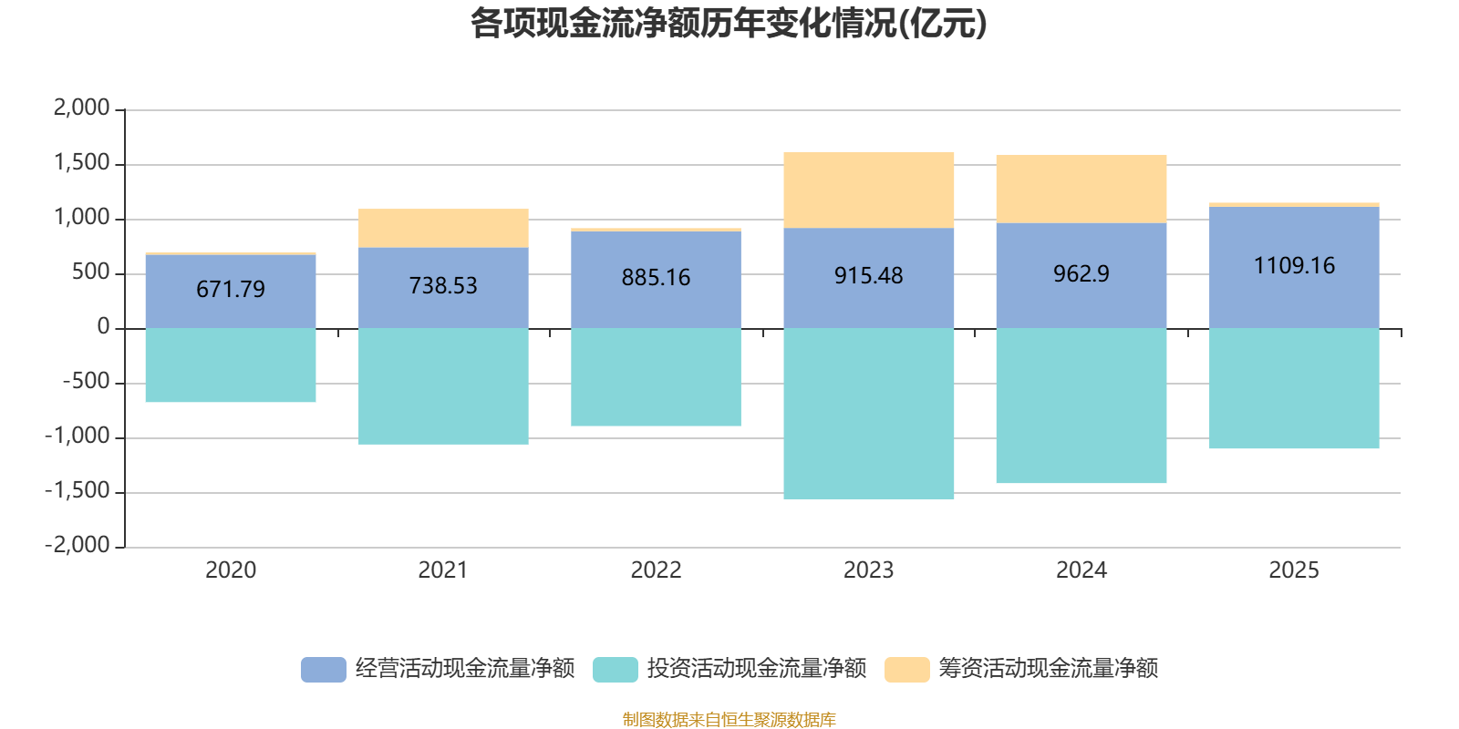 2025年,公司规划当作现款流净额为1109.16亿元,同比增长15.19%;筹资当作现款流净额37.39亿元,同比减少582.9亿元;投资当作现款流净额-1101.16亿元,上年同时为-1417.71亿元。
